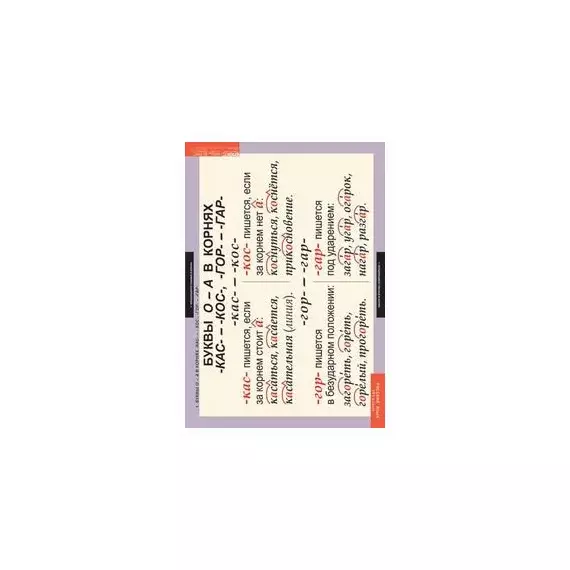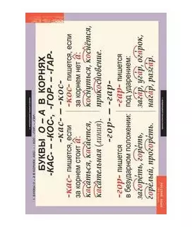 - Буквы О - А в корнях КАС - КОС, ГОР - ГАР.