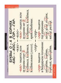 - Буквы О - А в корнях КАС - КОС, ГОР - ГАР.