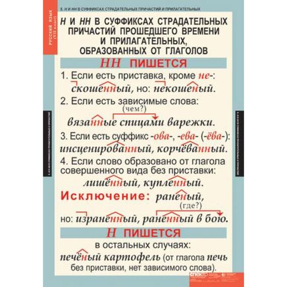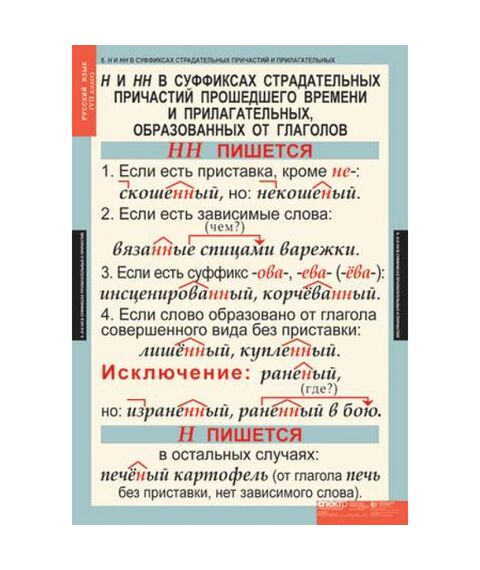 - Н и НН в суффиксах страдательных причастий прошедшего времени.