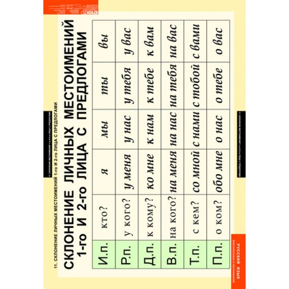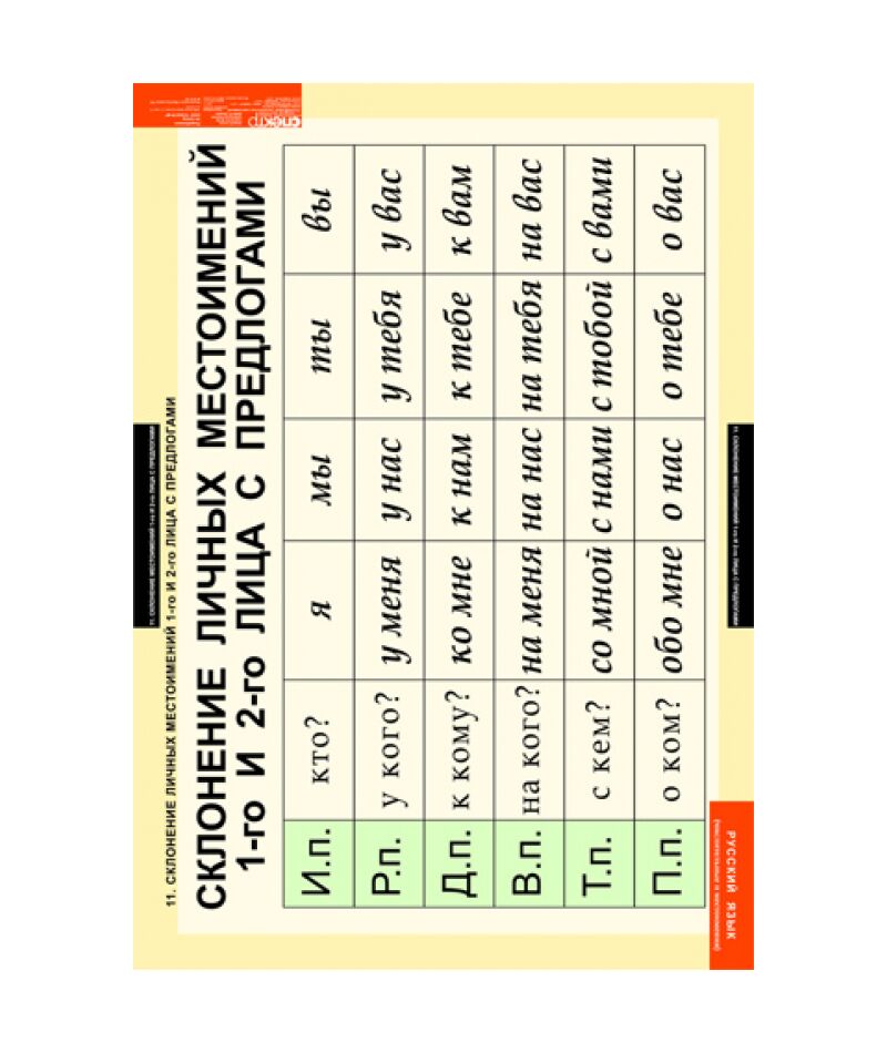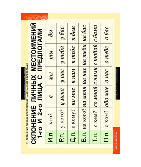 - Склонение личных местоимений 1-го и 2-го лица с предлогами.