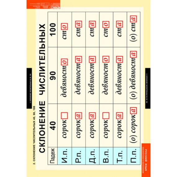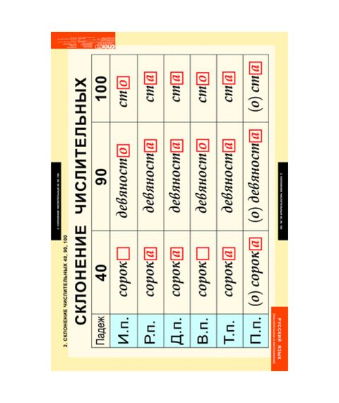 - Склонение числительных 40, 90, 10.