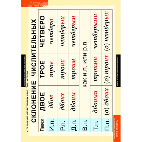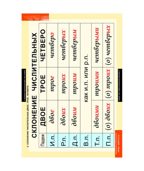 - Склонение числительных двое, трое. четверо.