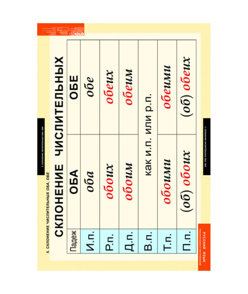 - Склонение числительных оба, обе. Морфологический разбор имени числительного.