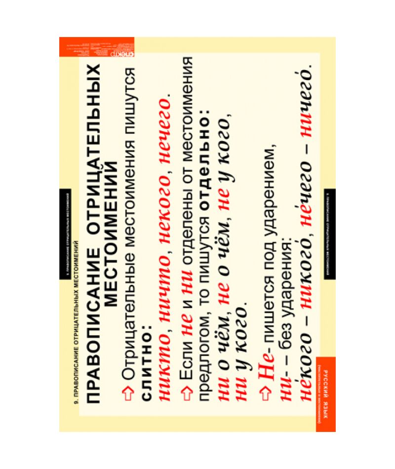 - Правописание отрицательных местоимений.
