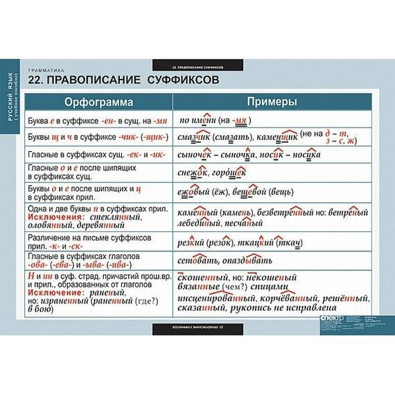 22.Правописание суффиксов. Содержит брошюру с методическими рекомендациями для учителя.