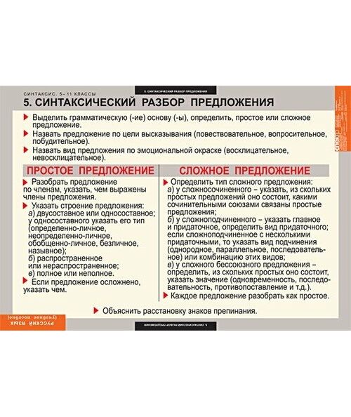 Таблицы Русский язык. Синтаксис. 5-11 классы 19 шт.