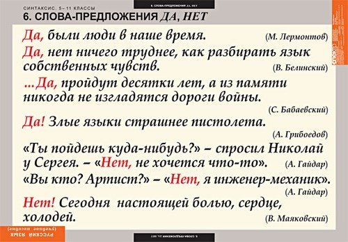 6. Слова предложения Да, Нет.