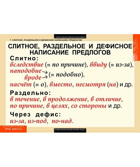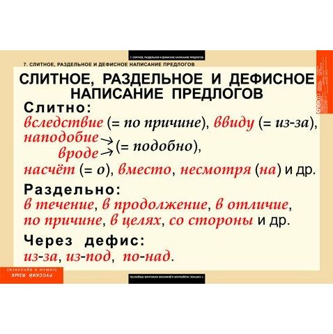 7. Слитное, раздельное и дефисное написание предлогов.