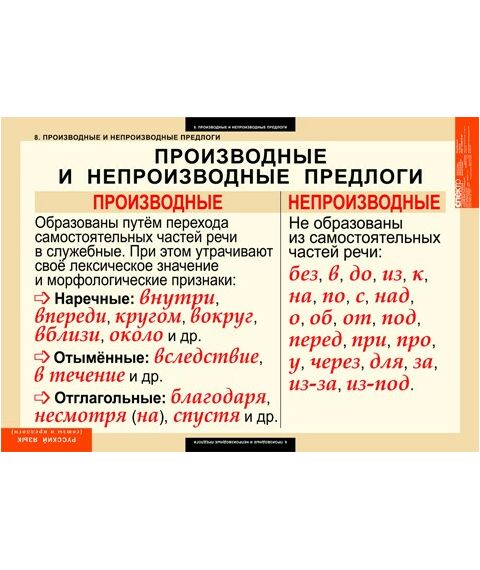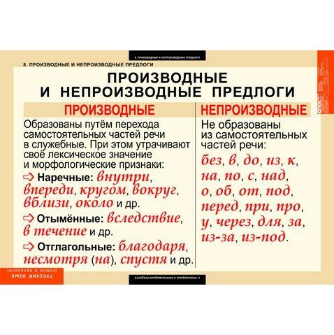 8. Отличие производных предлогов от омонимичных им самостоятельных частей речи.