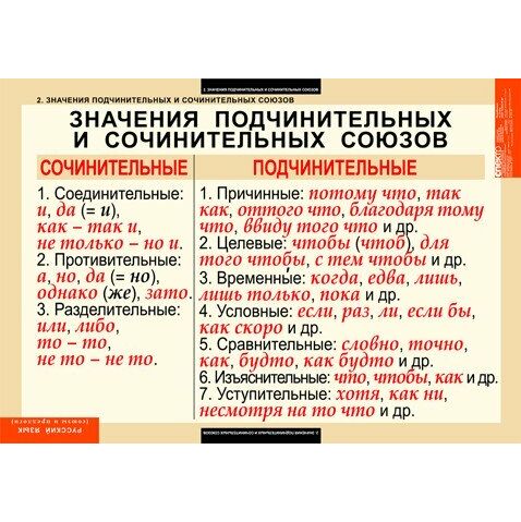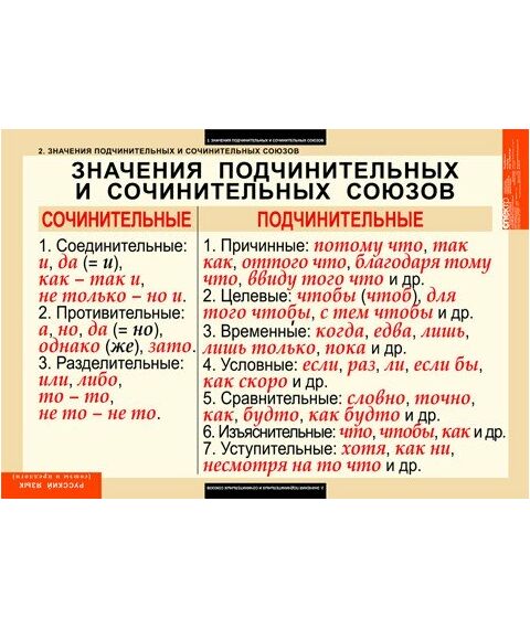 2. Значение подчинительных и сочинительных союзов.