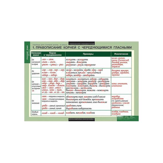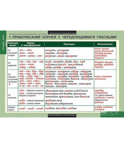 Описание Таблицы демонстрационные "Русский язык 10 кл."