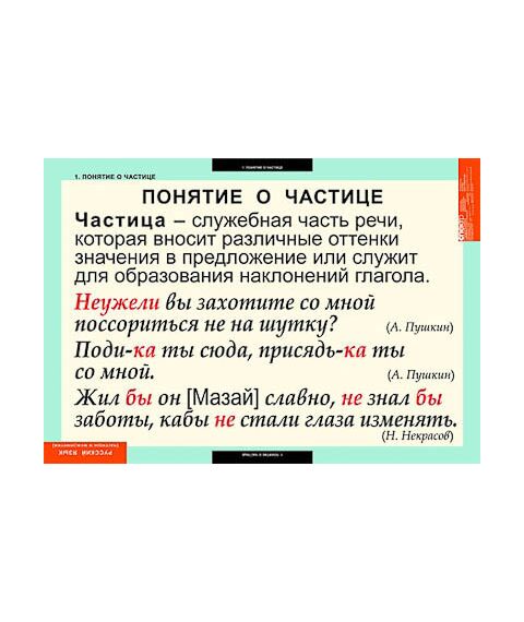 Описание Таблицы демонстрационные "Русский язык. Частицы и междометия"