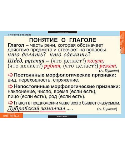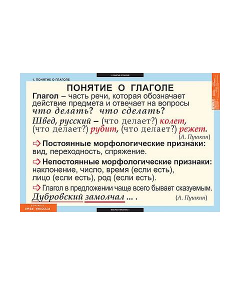 Описание Таблицы демонстрационные "Русский язык. Глаголы"