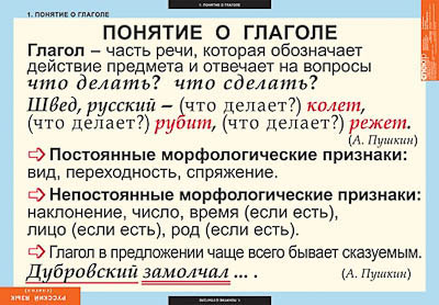 Описание Таблицы демонстрационные "Русский язык. Глаголы"