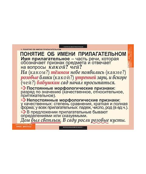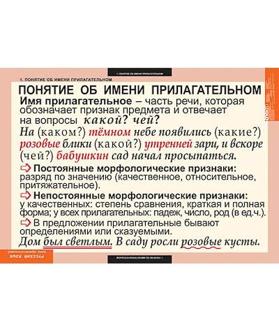 Описание Таблицы демонстрационные "Русский язык. Имя прилагательное"