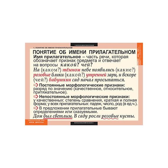 Таблицы демонстрационные "Русский язык. Имя прилагательное"