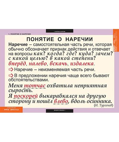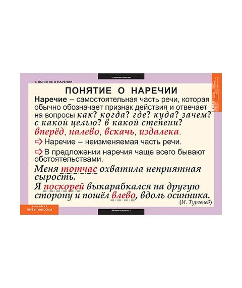 Описание Таблицы демонстрационные "Русский язык. Наречие"