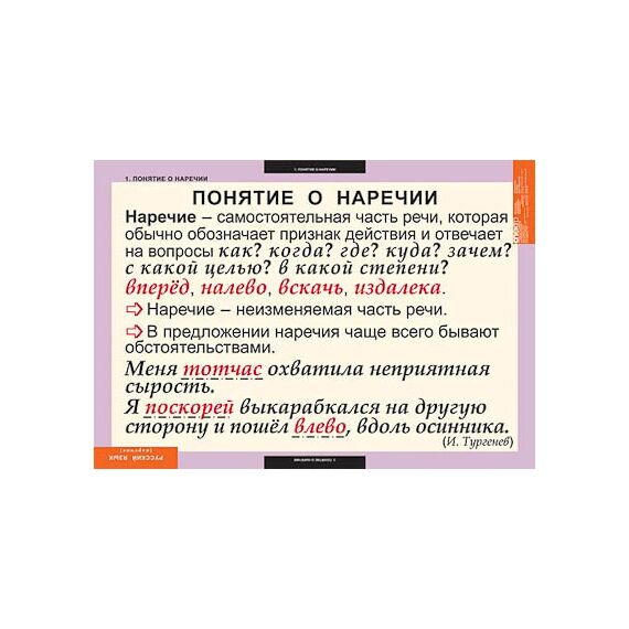 Таблицы демонстрационные "Русский язык. Наречие"