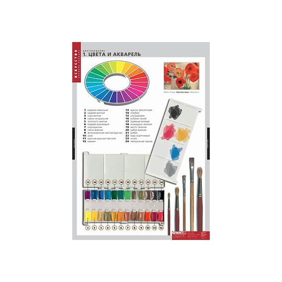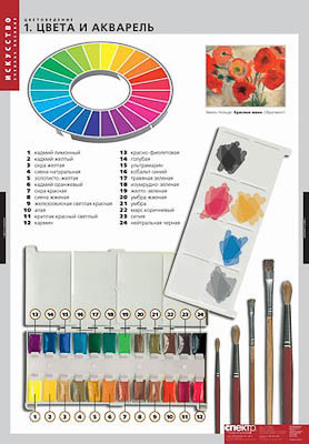 Цвета и акварель. Ахроматическая гармония. Типы смешения красок. Теплые и холодные цвета в живописи. Цветовой тон. Светлота и насыщеность. Перспектива в живописи. Светотени в сюжетных композициях. Восприятие контрастов. Гармонизация цвета. Классификация цветовых гармоний. Цветовая композиция. Колорит. Значение цвета. Символика цвета в иконописи. Цвет в интерьере. Круг естественных цветов по Гёте. Цветовые системы Рунге и Освальда. Цветовая система Менселла. Цветовая система в полиграфии.
