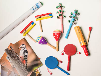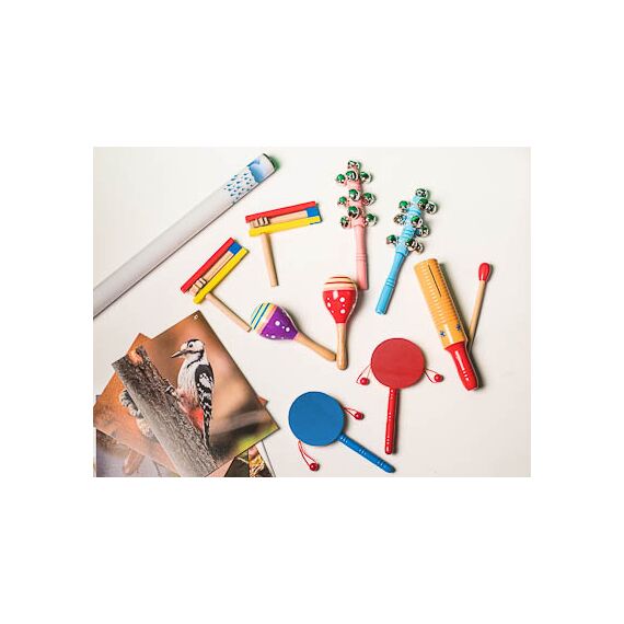 Комплектность: карточки – 16 шт., музыкальные инструменты (маракасы – 2 шт., трещотки – 2 шт., колотушки – 2 шт., инструмент «Шум дождя» – 1 шт., погремушки – 2 шт.), руководство по эксплуатации – 1 шт.