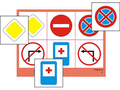 Описание Лото "Знаки дорожного движения" (4 планшета, 24 карт., цвет., ламинир.)