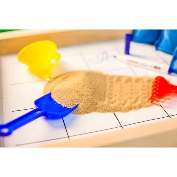 Комплектность: песочница – 1 шт., крышка – 1 шт., мелкофракционный кварцевый песок – 2 кг, лопатка – 1 шт., грабли – 1 шт., воронка – 1 шт., трафареты («Клетка», «Линейка») – 2 шт., руководство по эксплуатации – 1 шт.