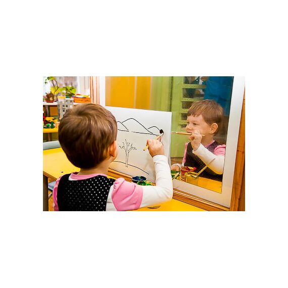 Рабочая поверхность мольберта изготовлена из акрилового стекла и вставлена в раму из натурального бука. Размер мольберта 75*57*6 см. Складные ножки мольберта позволяют использовать его как в вертикальном, так и горизонтальном положении. Зеркало легко крепится к рабочей поверхности мольберта в специально подготовленные пазы.