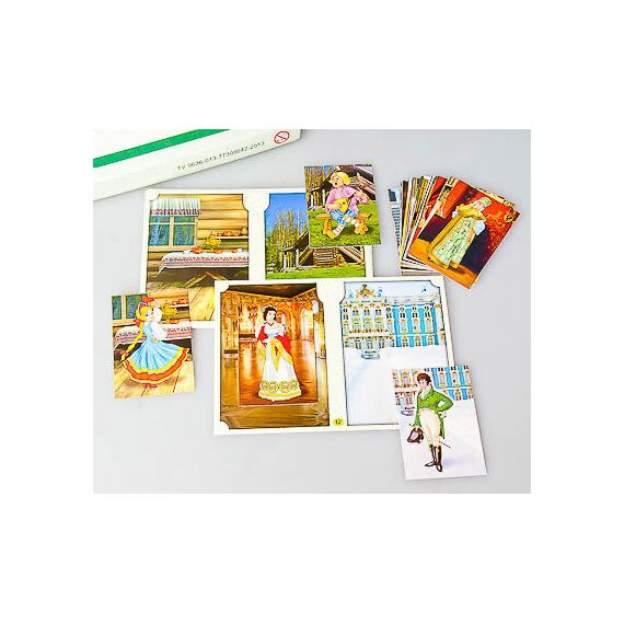 Игра состоит из 16-ти полноцветных игровых полей формата А5 и 32-х полноцветных карточек. Карточки и игровые поля изготовлены из картона и ламинированы пленкой. Каждое игровое поле посвящено одной стране и эпохе и содержит два изображения: интерьера (слева) и экстерьера (справа). На карточках изображены персонажи (мужчины и женщины) в характерных для определенной страны и эпохи одеждах; они служат продолжением изображений на игровых полях и содержат общие с ним детали фона.