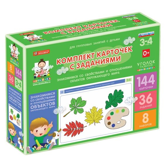 Комплект карточек с заданиями для групповых занятий с детьми от 3 до 4 лет. Знакомимся со свойствами и отношениями объектов окружающего мира