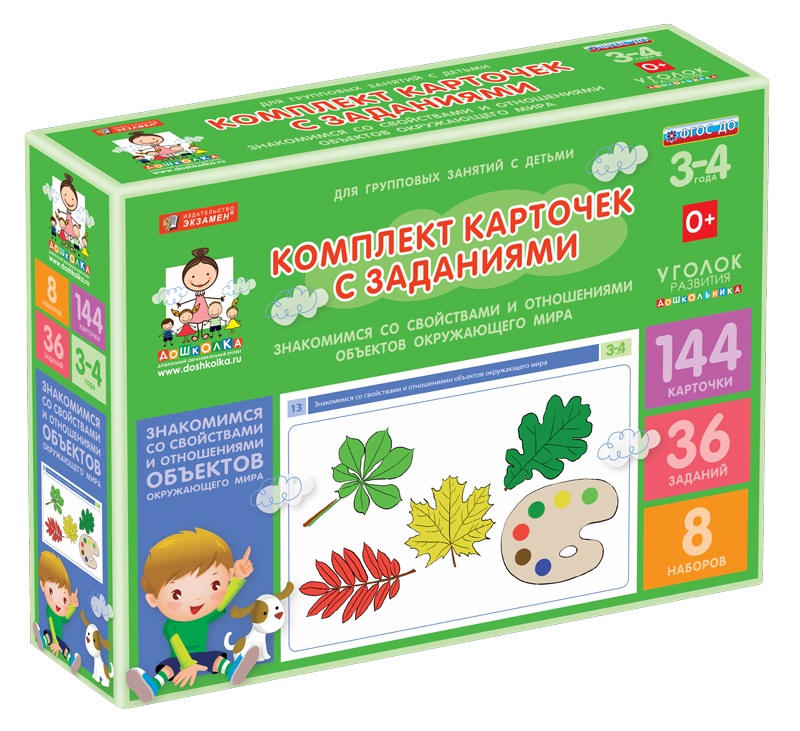 Комплект карточек с заданиями для групповых занятий с детьми от 3 до 4 лет. Знакомимся со свойствами и отношениями объектов окружающего мира