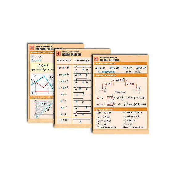 Наличие товара Комплект таблиц по алгебре "Алгебра. Неравенства" (8 табл., формат А1, лам.)
