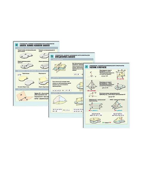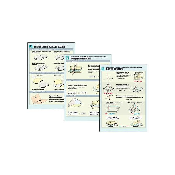 Наличие товара Комплект таблиц по геометрии раздат. "Стереометрия. Взаим. расп. фигур в простр-ве" (цв, лам, 8 шт.)