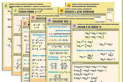 Описание Комплект таблиц по всему курсу "Алгебра и начала анализа" (50 табл., А1, полноцв., лам.)