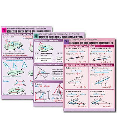 Описание Комплект таблиц по всему курсу геометрии (100 табл., А1, полноцв., лам.)