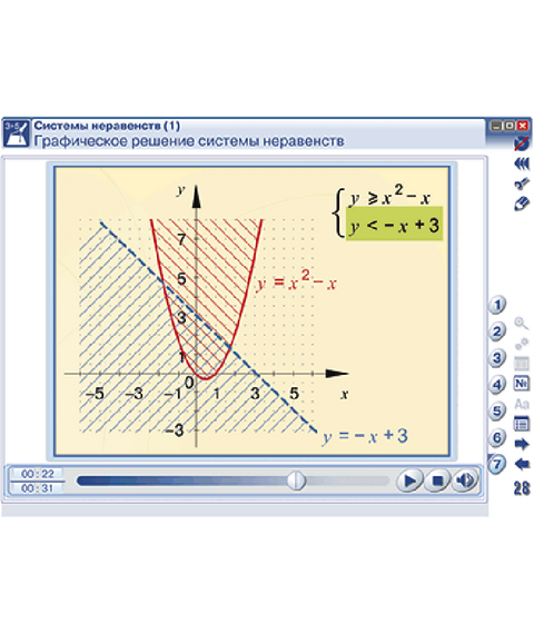 Интерактивное учебное пособие разработано с учётом ФГОС и примерной программы по математике основного и среднего общего образования. Материал интерактивного учебного пособия «Наглядная математика. Уравнения и неравенства» содержит темы учебных курсов по алгебре 7-11 классов. Пособие можно использовать с любыми учебниками, входящими в Федеральный перечень. В темы включены тестовые контрольные задания, интерактивные упражнения на усвоение теоретического материала и на отработку практических навыков. В пособии использованы следующие медиаобъекты: аудиолекции, интерактивные модели различных явлений, процессов, 3-D модели, интерактивные задания, в том числе с возможностью изменять числовые и графические параметры. Отличительной особенностью интерактивного учебного пособия «Уравнения и неравенства» является создание собственной тематической последовательности курса с возможностью включить дополнительные медиаобъекты в структуру самого пособия. Пособия помогут педагогу организовать работу на уроке с учётом особенностей и возможностей класса.