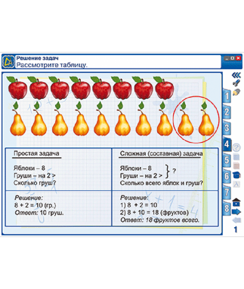 Пособие можно использовать с любыми учебниками, входящими в Федеральный перечень. Интерактивное учебное пособие «Математика 2 класс. Геометрические фигуры и величины. Текстовые задачи. Пространственные отношения» содержит все темы годового учебного курса по математике. В каждую тему включены тестовые контрольные задания, интерактивные упражнения на усвоение теоретического материала и на отработку практических навыков. В пособии использованы следующие медиаобъекты: анимации, аудиосопровождение заданий, интерактивные схемы, работа с виртуальными инструментами, 3-D модели, установление соответствия (соединение), последовательности, обобщение, классификация объектов, кроссворды, интерактивные таблица умножения. Отличительной особенностью интерактивных учебных пособий «Математика» является создание собственной тематической последовательности курса с возможностью включить дополнительные медиаобъекты в структуру самого пособия. Пособия помогут педагогу организовать работу на уроке с учётом особенностей и возможностей класса.