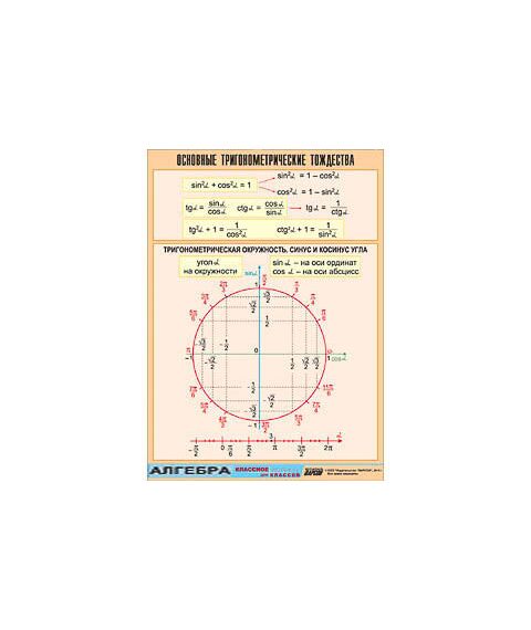 Таблица демонстрационная "Основные тригонометрические тождества" (винил 100х140)