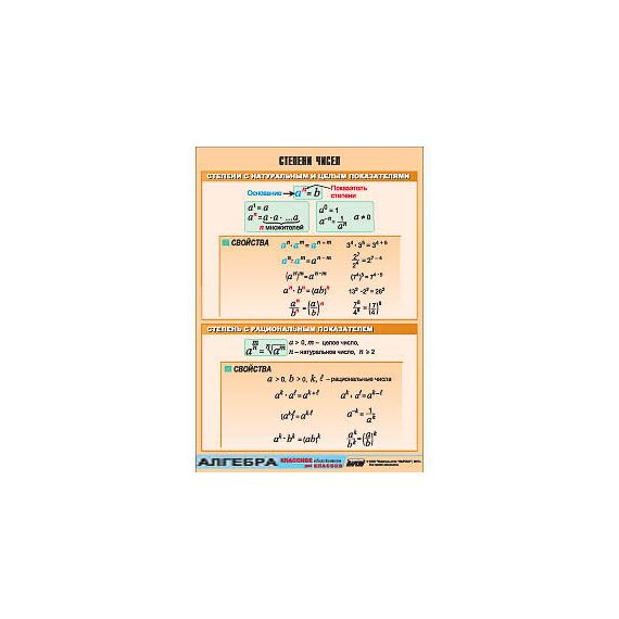 Таблица демонстрационная "Степени чисел" (винил 70х100)