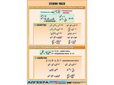Таблица демонстрационная "Степени чисел" (винил 70х100)
