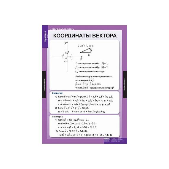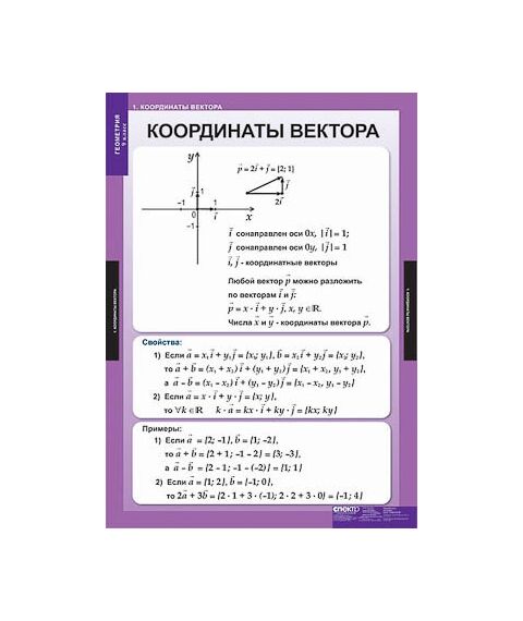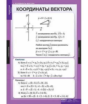 Координаты вектора. Связь между координатами вектора и координатами его начала и конца. Уравнения окружности и прямой. Синус, косинус, тангенс угла. Основное тригонометрическое тождество. Формулы приведения. Соотношения между сторонами и углами треугольника. Теоремы синусов и косинусов. Скалярное произведение векторов. Правильные многоугольники. Построение правильных многоугольников. Длина окружности и площадь круга. Понятие движения. Параллельный перенос и поворот.