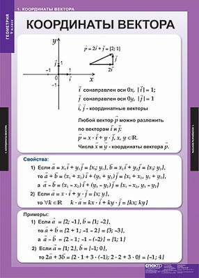 Координаты вектора. Связь между координатами вектора и координатами его начала и конца. Уравнения окружности и прямой. Синус, косинус, тангенс угла. Основное тригонометрическое тождество. Формулы приведения. Соотношения между сторонами и углами треугольника. Теоремы синусов и косинусов. Скалярное произведение векторов. Правильные многоугольники. Построение правильных многоугольников. Длина окружности и площадь круга. Понятие движения. Параллельный перенос и поворот.