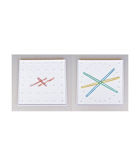 Изделие представляет собой пластиковый математический планшет размером 18х18 см, на одну сторону которого нанесена сетка из выступающих колышков шагом в 3 см, на другую – окружность диаметром 15 см и шагом в 2 см.