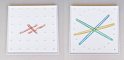 Изделие представляет собой пластиковый математический планшет размером 18х18 см, на одну сторону которого нанесена сетка из выступающих колышков шагом в 3 см, на другую – окружность диаметром 15 см и шагом в 2 см.