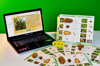 В коллекции представлены шишки, плоды и семена хвойных и покрытосеменных растений: дуба (или лещины), клена, караганы («желтой акации»), березы, тополя, ели, лиственницы, сосны, можжевельника. Натуральные образцы сопровождаются фотографиями растений. Планшеты формата А4 изготовлены из картона и ламинированы глянцевой пленкой.