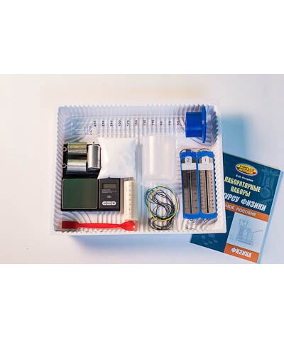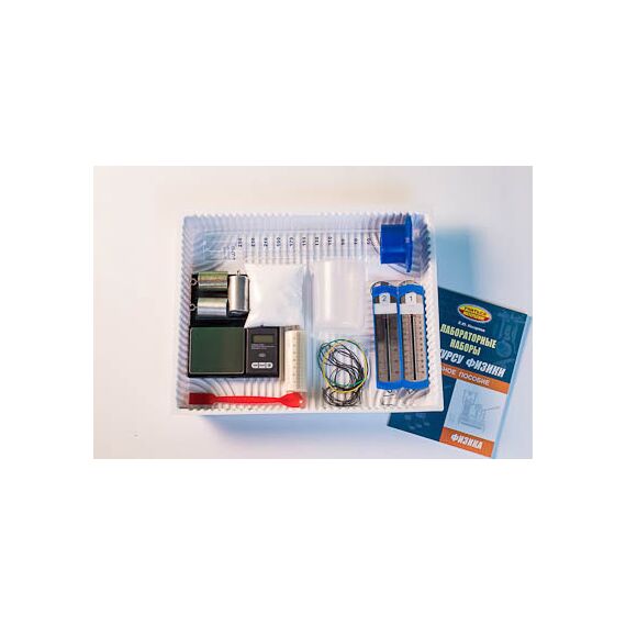 Состав комплекта: весы электронные - 1 шт., измерительный цилиндр стеклянный (мензурка), предел измерения 250 мл (цена деления 2 мл) - 1 шт., стакан пластиковый с носиком (250 мл) - 1 шт., динамометр № 1 планшетный, предел измерения 1 Н (цена деления 0,02 Н) - 1 шт., динамометр № 2 планшетный, предел измерения 5 Н (цена деления 0,1 Н) - 1 шт., поваренная соль - 1 уп., палочка для перемешивания пластиковая - 1 шт., цилиндр стальной на нити №1, V = (25,0±0,3) см3, высота 40 мм, m = (195±2) г - 1 шт., цилиндр алюминиевый на нити №2, V = (25,0±0,7) см3, высота 40 мм, m = (70±2) г - 1 шт., цилиндр пластиковый на нити №3 со шкалой длиной 80 мм с ценой деления 1 мм, V = (56,0±1,8) см3, m = (66±2) г - 1 шт., цилиндр алюминиевый №4 , V = (34,0±0,7) см3, высота 50 мм, m = (95±2) г - 1 шт., нить 50 см - 4 шт., лоток пластиковый размером 340*270*55 мм - 1 шт., учебное пособие «Лабораторные наборы по курсу физики» (автор Е.Ю. Косарева – 68 страниц – печать офсетная, обложка полноцветная) – 1 шт., руководство по эксплуатации - 1 шт.