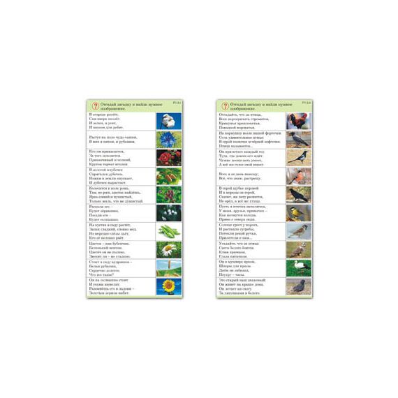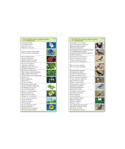 Пособие состоит из 10 полноцветных, напечатанных на картоне и ламинированных пленкой карточек. Карточки снабжены маркировкой, где буква обозначает предмет, первая цифра – код темы, вторая цифра – порядковый номер (тему) карточки в серии, последняя цифра – вариант (I или II)
