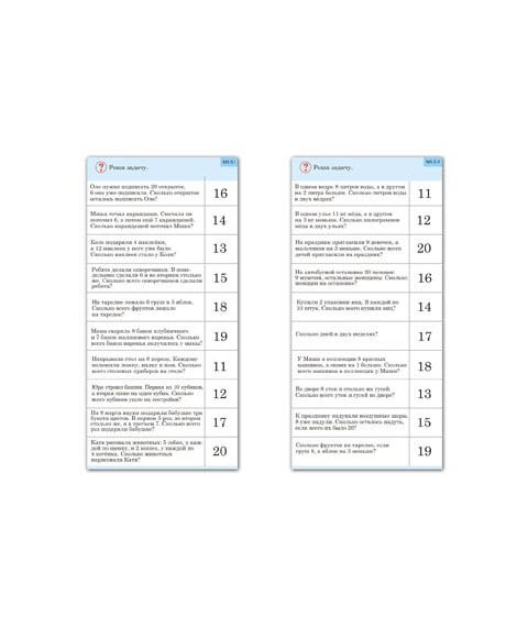Комплект карточек (10) "Сложение и вычитание в пределах 20"