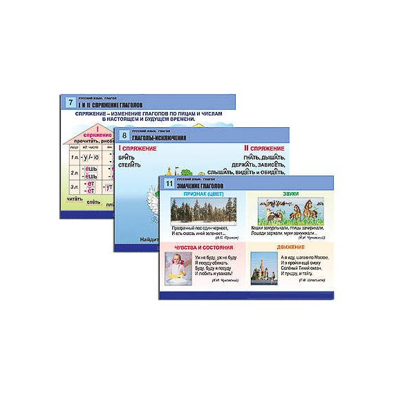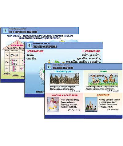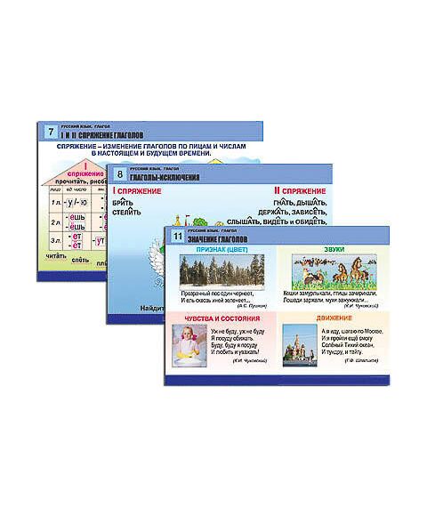 Наличие товара Комплект таблиц для нач. шк. "Русский язык. Глагол" (12 табл., формат А1, лам.)