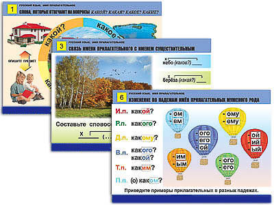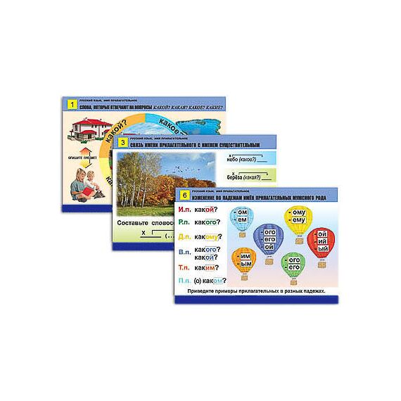 Описание Комплект таблиц для нач. шк. "Русский язык. Имя прилагательное" (12 табл., формат А1, лам.)