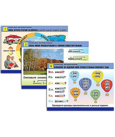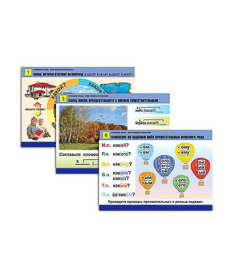 Наличие товара Комплект таблиц для нач. шк. "Русский язык. Имя прилагательное" (12 табл., формат А1, лам.)
